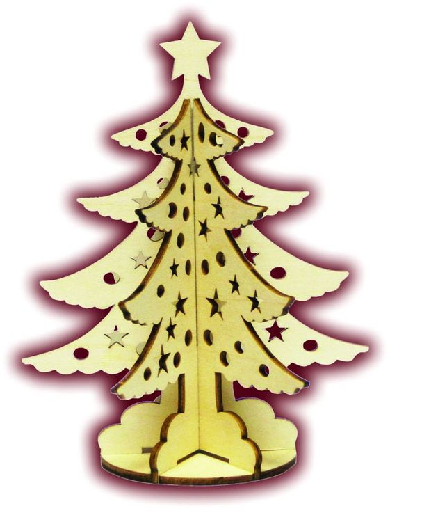 Сборная деревянная модель "Новогодняя елка", артикул: 80021. Комплект включает в себя набор деталей, вырезанных лазером на листовом дереве (фанера); схему сборки; наждачную бумагу. Детали скрепляются в порядке и очередности, обозначенной в инструкции. Для прочности соединений рекомендуется использовать клей ПВА (не токсичен, не имеет запаха, после высыхания становится прозрачным, имеет эластичный клеевой шов, при загустевании может быть разбавлен водой). Возрастная ориентация: от 5 до 105 лет.